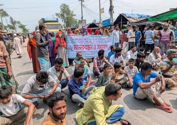 মানববন্ধনে কার্ডধারী ছাড়াও এলাকার সচেতন মহলের প্রতিনিধিরা অংশ নেন।