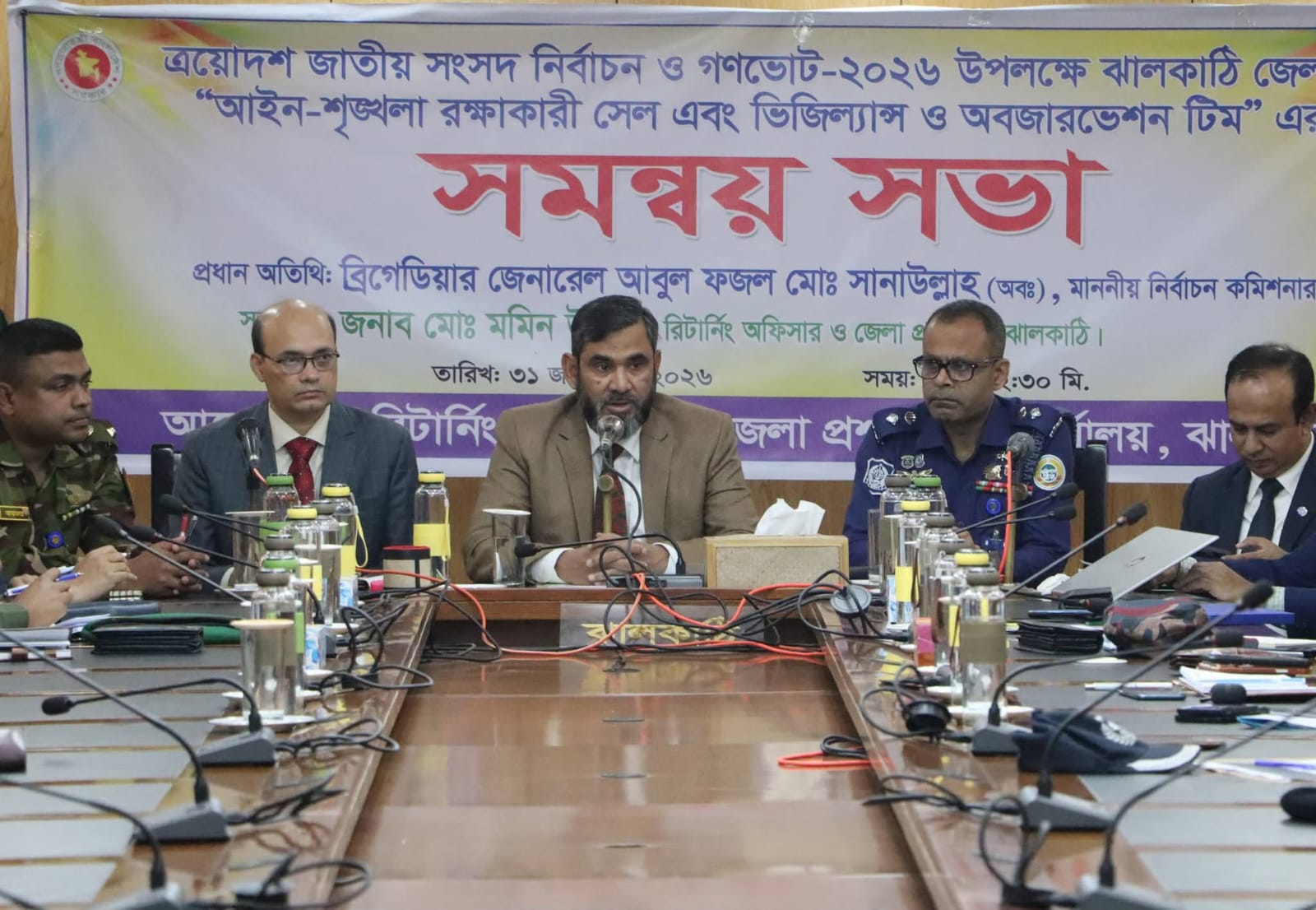 ত্রয়োদশ জাতীয় সংসদ নির্বাচন ও গণভোট–২০২৬ উপলক্ষে ঝালকাঠি জেলার আইন-শৃঙ্খলা পরিস্থিতি ও সার্বিক প্রস্তুতি পর্যালোচনায় আজ শুক্রবার (৩১ জানুয়ারি ২০২৬) ঝালকাঠি জেলা প্রশাসকের কার্যালয়ের সম্মেলন কক্ষে “আইন-শৃঙ্খলা রক্ষাকারী সেল এবং ভিজিল্যান্স ও অবজারভেশন টিম”-এর এক সমন্বয় সভা অনুষ্ঠিত হয়।