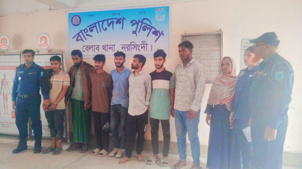 নরসিংদীর বেলাবোতে আইনশৃঙ্খলা রক্ষা ও অপরাধ প্রতিরোধে মধ্যরাতে অভিযান চালিয়ে গাঁজা ও ইয়াবা সেবনের অভিযোগে স্কুল পড়ুয়া শিক্ষার্থী এবং এক নারী সহ আট ব্যক্তিকে আটক করে মোবাইল কোর্টে দণ্ড দেওয়া হয়েছে।বৃহস্পতিবার (৫ মার্চ) রাত ১২টা উপজেলার পাটুলী ইউনিয়নের হাড়িসাংগান এবং চর উজিলাবো ইউনিয়নের বিভিন্ন এলাকায় এ অভিযান পরিচালনা করা হয়। এসময় গাঁজা ও ইয়াবা সেবনে জনসাধারণের শান্তি বিনষ্ট করার অপরাধে ৮ জনকে হাতেনাতে আটক করা হয়।