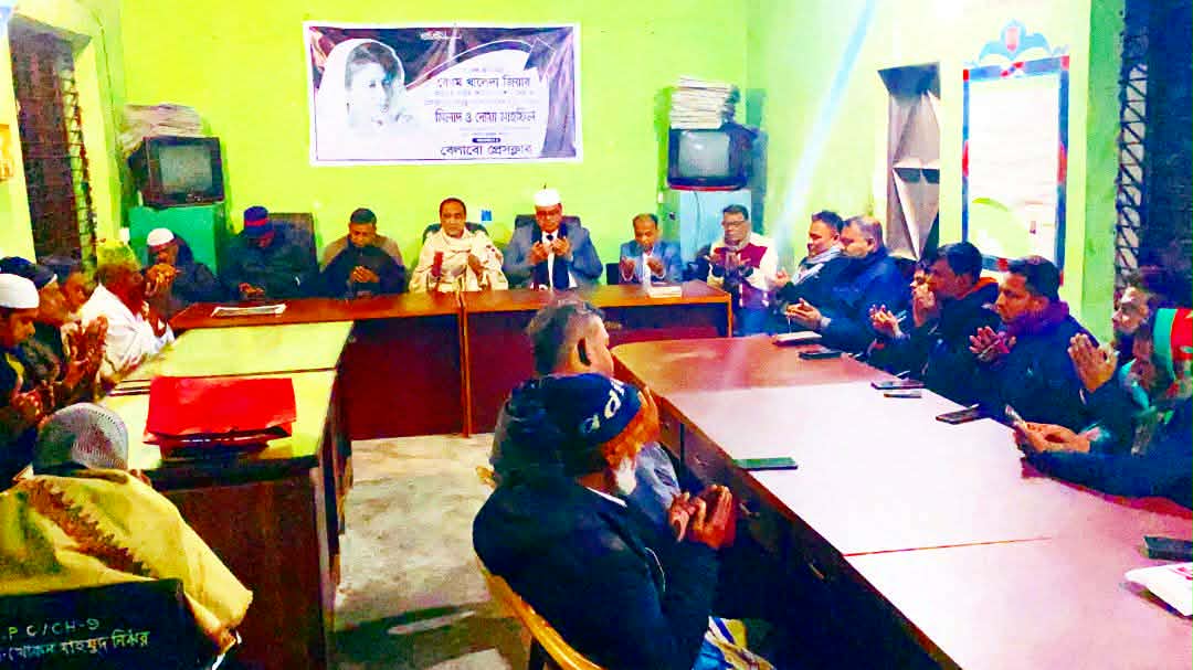 নরসিংদীর বেলাবো প্রেসক্লাবে সাবেক প্রধানমন্ত্রী ও বিএনপি চেয়ারপারসন মরহুম বেগম খালেদা জিয়ার আত্মার মাগফেরাত এবং অসুস্থ সাংবাদিকদের দ্রুত সুস্থতা কামনায় দোয়া ও মিলাদ মাহফিল অনুষ্ঠিত হয়েছে। শুক্রবার বাদ মাগরিব প্রেসক্লাব কার্যালয়ে এই অনুষ্ঠানের আয়োজন করা হয়।