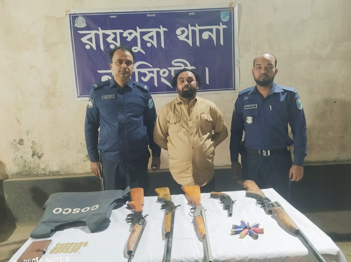 ১৩ই ফেব্রুয়ারি সন্ধ্যা থেকে এলাকার আইন-শৃঙ্খলা পরিস্থিতি স্বাভাবিক রাখার লক্ষ্যে রায়পুরা থানার চরাঞ্চলের পাড়াতলী ও বাঁশগাড়ি ইউনিয়নে সেনাবাহিনী, পুলিশ ও র্যাবের সমন্বয়ে যৌথ টহল পরিচালনা করা হয়। এ সময় গোপন সংবাদের ভিত্তিতে জানা যায় যে পাড়াতলী ইউনিয়নের মামদেরকান্দি এলাকায় সন্ত্রাসীরা অবৈধ আগ্নেয়াস্ত্রসহ অবস্থান করছে। এই সংবাদের প্রেক্ষিতে মামদেরকান্দি এলাকায় তাৎক্ষণিক অভিযান পরিচালনা করে নুর আলম ওরফে কাবিলা, পিতা-মজিবুর রহমান খন্দকার, সাং-কাচারিকান্দি নামে একজন সন্ত্রাসীকে গ্রেফতার করা হয় এবং পাঁচটি দেশীয় তৈরি আগ্নেয়াস্ত্র (এক নলা বন্দুক), ০৭টি শর্টগানের কার্তুজ, ০১ রাউন্ড চায়না রাইফেলের গুলি ও একটি বুলেট প্রুফ জ্যাকেট উদ্ধার করা হয়।