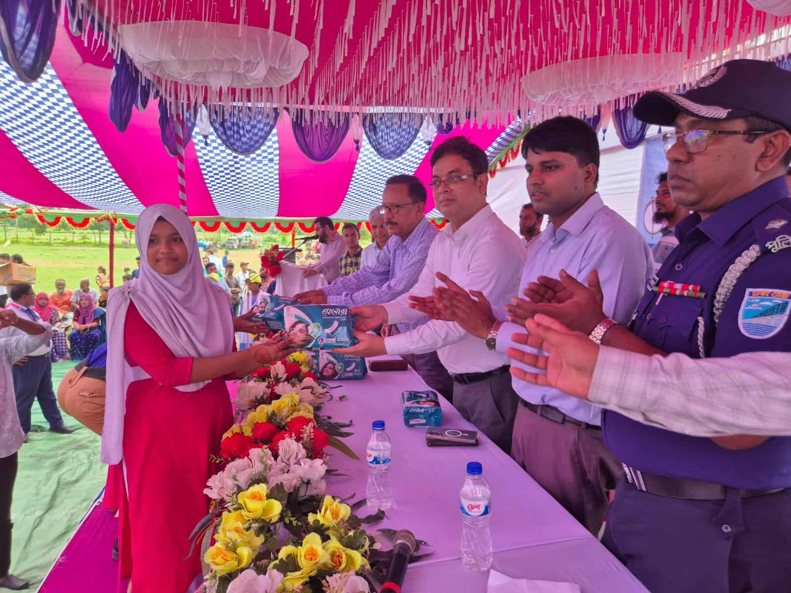 শনিবার(২৩ আগষ্ট) দুপুরে উপজেলার হোসেননগর পাইট হাই স্কুলে মাঠে এ উপকরণ বিতরণ করা হয়।